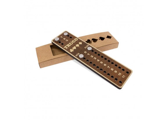 | Características | • Marcador de truco personalizável • Marcador de madeira cortado a laser • Pinos metálicos para marcação • Caixa exclusiva |