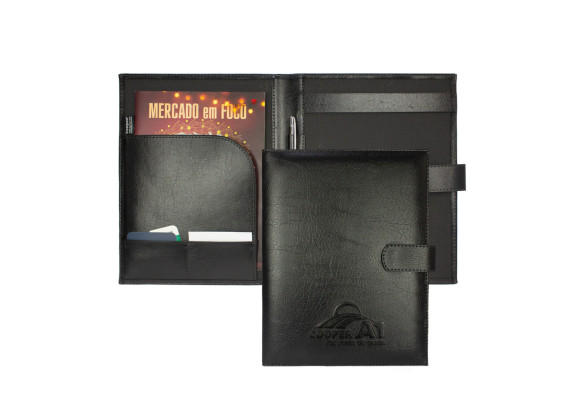| Características | • Produto Artesanal Fabricado no Brasil • Revestimento em couro sintético • Costurado • Almofadado • Bolsa Interna • Fechamento em Botão Magnético |