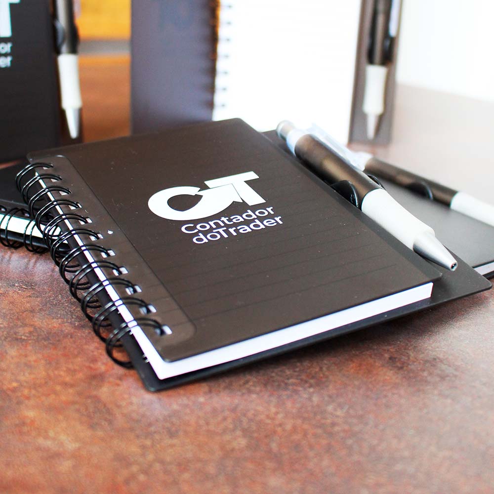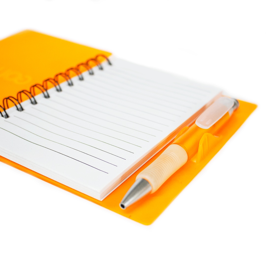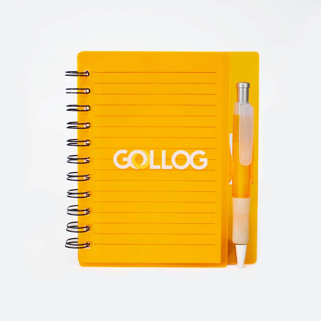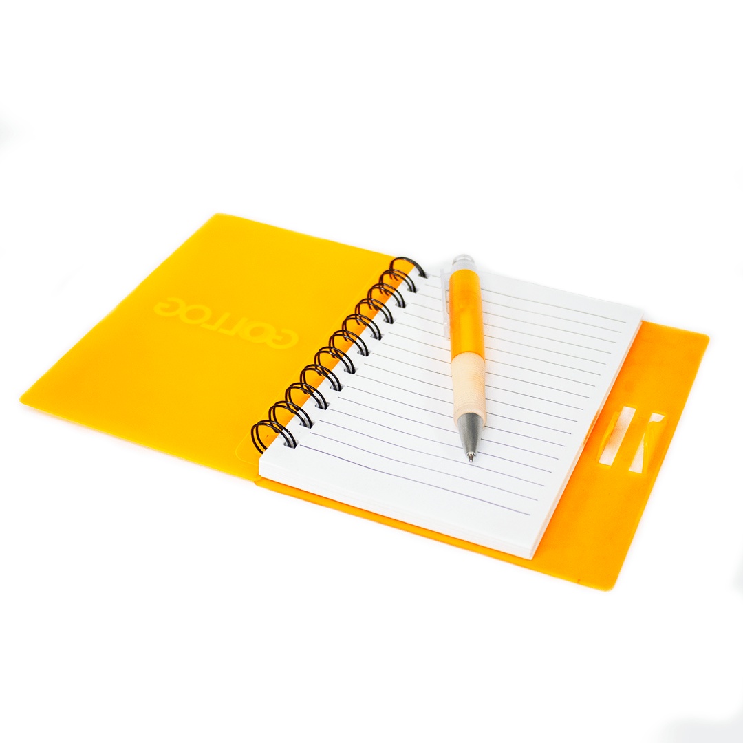 – Bloco de anotações plástico colorido com wire-o;