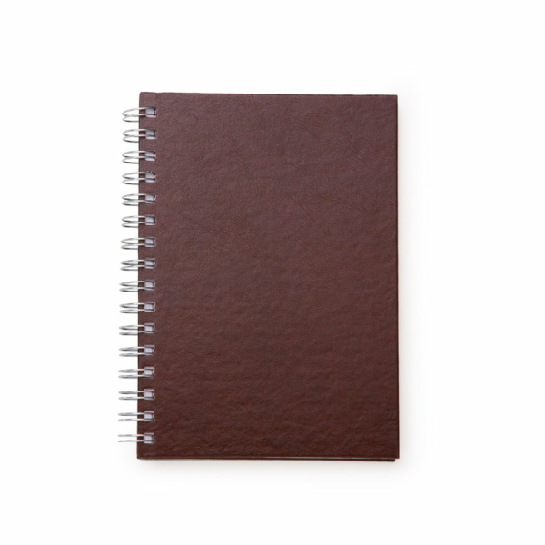 Caderno Pequeno de Couro Sintético possui aproximadamente 96 folhas brancas pautadas. Com capa em couro sintético texturizado e wire-o prata. Além de, páginas para dados pessoais e calendário.