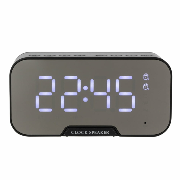 Quer uma maneira eficaz de presentear seus clientes e subordinados da empresa? Ofereça uma Caixa de Som com Suporte para Celular personalizada. Essa caixa de som multimídia é feita em plástico com uma área frontal espelhada e display de LED, além de possuir um compartimento com suporte para celular – uma espécie de “gaveta” aonde é exibido (CLOCK SPEAKER), basta puxá-la ter acesso ao compartimento.