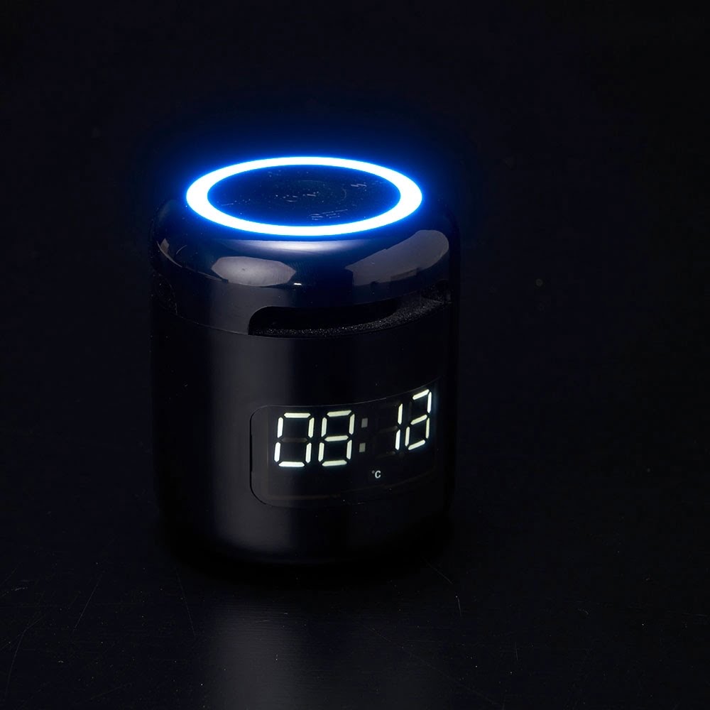Com bateria de longa duração, a caixinha de som possui display de LED na área frontal, proporcionando maior praticidade na visualização das informações. Já o anel de LED brilhante na parte superior adiciona um toque moderno e sofisticado ao design da Caixinha de Som.
