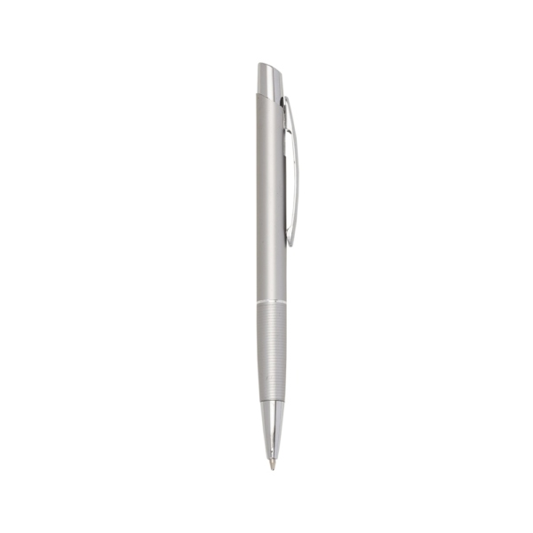 Caneta Metal possui carga esferográfica azul e seu acionamento é por clique. Possui Clip metálico.