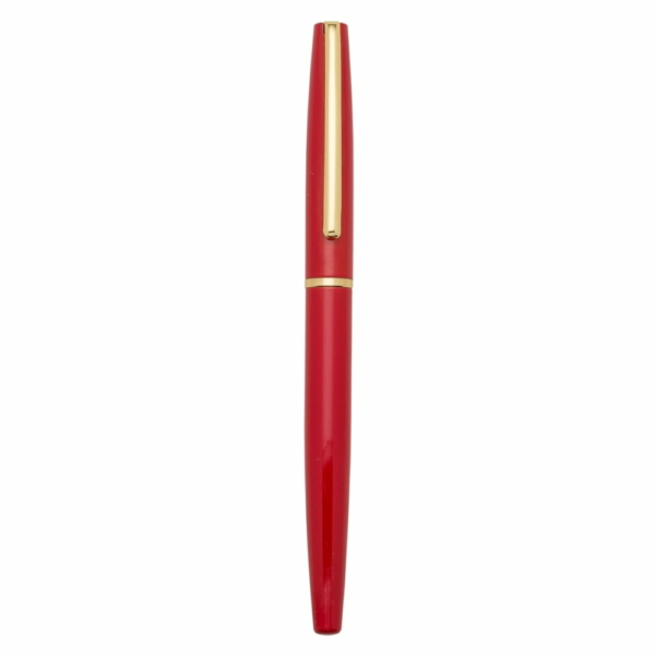 Caneta Metal LG14398. Essa Caneta metálica possui cor vermelha, tem fechamento a tampa e sua carga é rollerball azul. Canetas personalizadas trazem extrema visibilidade para sua marca e terá muita usabilidade para os seus clientes.