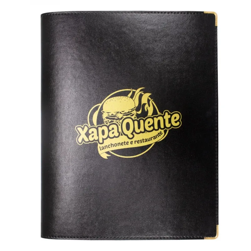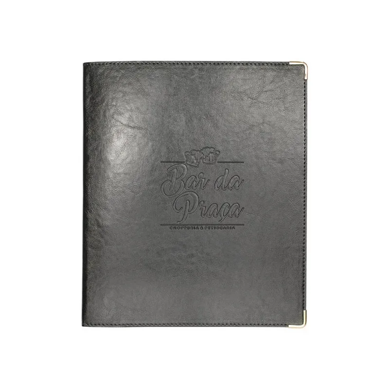 O Cardápio Rústico Incorpast garante durabilidade e elegância na apresentação de seu menu. Fabricado em couro sintético o Cardápio Rústico vem com 10 plásticos, possui parafusos e cantoneiras em metal. O Cardápio Rústico Incorpast te garante mais facilidade pois pode ser limpo sempre que necessário. Personalize sua Logo em baixo relevo ou serigrafia. Tenha um Cardápio com o mesmo nível de qualidade que seus alimentos em seu Estabelecimento!