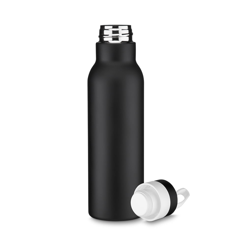 A Garrafa Preta Fosca 500ml é o acessório perfeito para manter-se hidratado durante todo o dia. Possui tampa rosqueável com interior em borracha antideslizante e alça colorida que auxilia no transporte. Além disso, seu material em inox com parede dupla conserva temperatura quente ou fria e garante alta durabilidade e resistência.