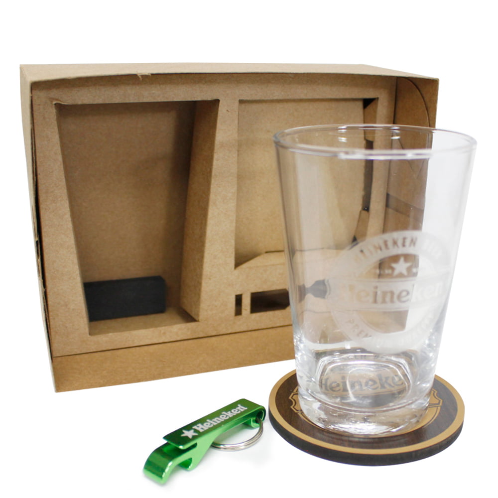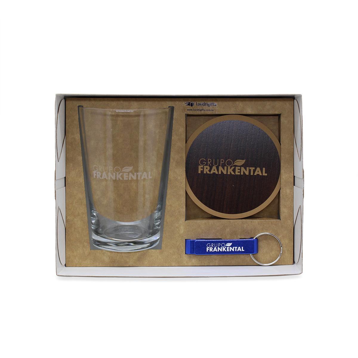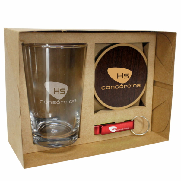 Além disso, você pode personalizar as 3 (três) peças do Kit Festeiro com a logo da sua empresa através da gravação a laser.