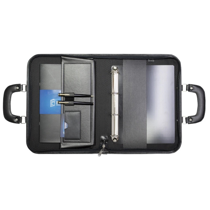 A Maleta Executiva 1690 Incorpast te garante praticidade e segurança para transportar seus documentos e notebook para o trabalho, reuniões, apresentações empresariais, cursos e palestras com praticidade e elegância. A Maleta Executiva 1690 Incorpast possui 1 bolsa interna, 1 porta cartão, 2 porta canetas, ferragem 4 argolas removível e fechamento a zíper. A Maleta Executiva 1690 Incorpast é o produto ideal para sua empresa, equipe e evento! Personalize sua Logo em baixo relevo ou serigrafia, você ainda pode personalizar o produto de acordo com a sua necessidade incluindo abas internas, bolsos e zíperes.