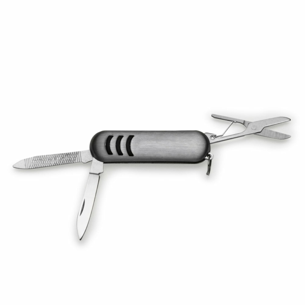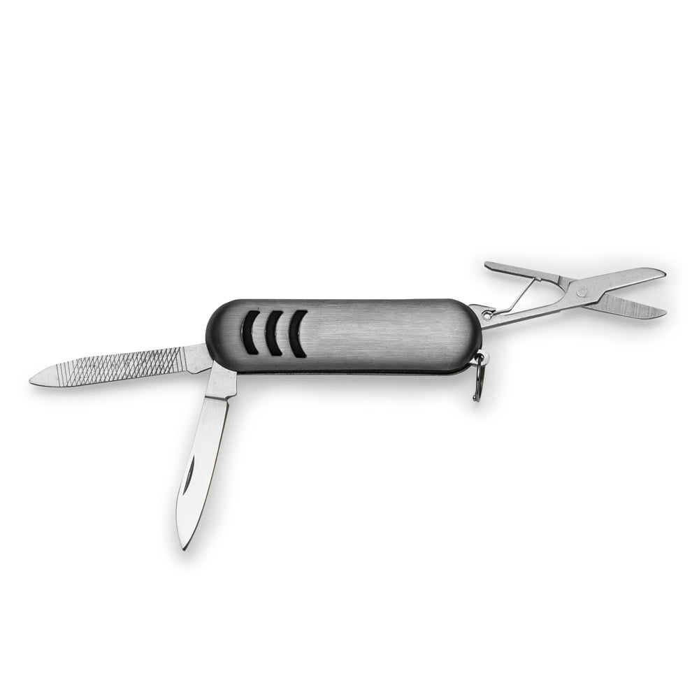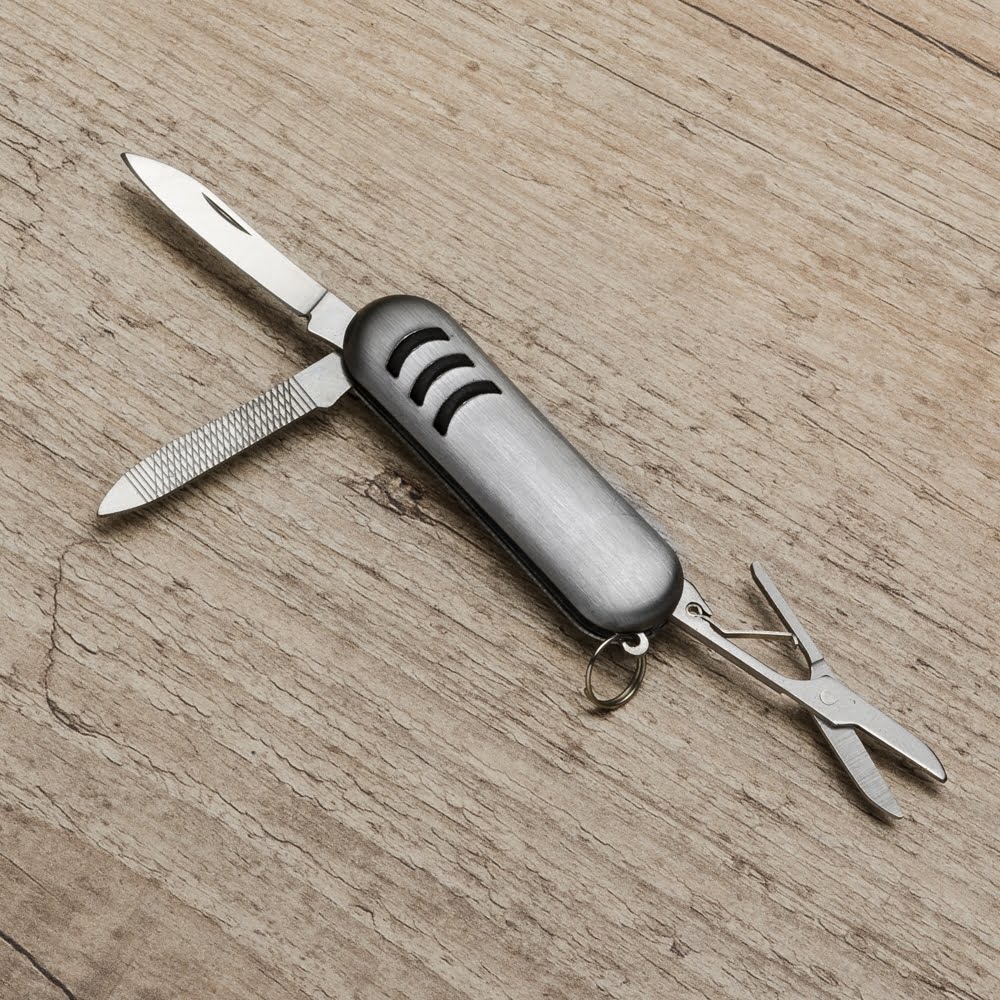 O Mini Canivete Personalizado 3 Funções é o presente perfeito para colaboradores que valorizam a praticidade e a versatilidade. Com sua lâmina de corte, mini tesoura e lixa, este canivete pode ser usado em diversas situações do dia a dia. Além de resistente por ser confeccionado em metal, acompanha pequena argola para utilizar como chaveiro.