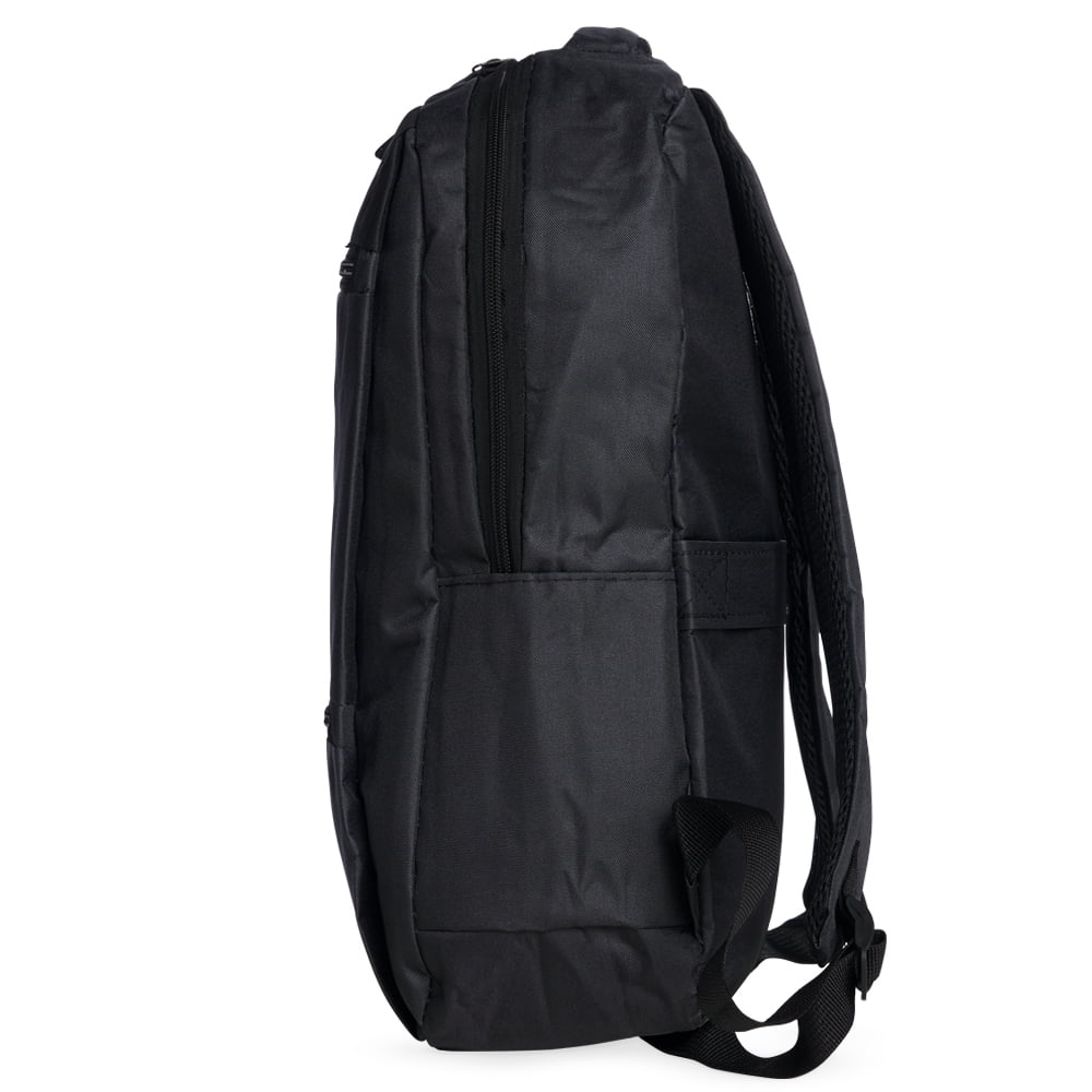 Este modelo de Mochila contém alça para encaixe em malas de viagem, alça para as mãos e alças reguláveis para as costas com revestimento espumado.