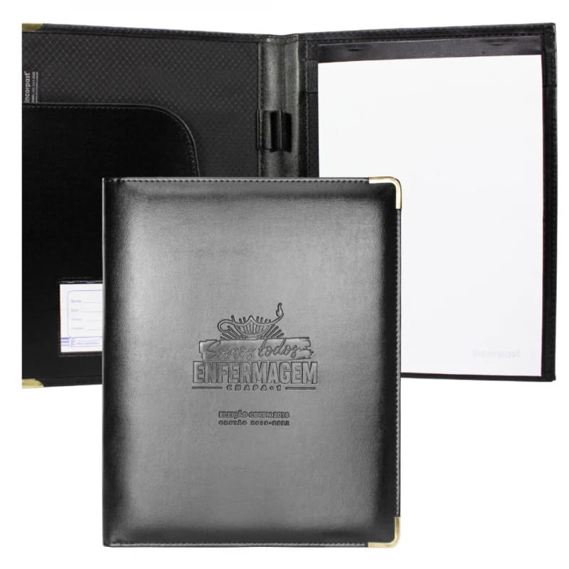 A Pasta Convenção Simi Luxo Incorpast é perfeita para você que está sempre em reuniões, eventos, feiras e palestras. Com a Pasta Convenção Simi Luxo Incorpast você tem mais facilidade para levar o seu material para palestras, eventos e apresentações. A Pasta Convenção Simi Luxo possui suporte para bloco de anotações, 1 porta caneta, 1 bolsa interna, cantoneiras em metal e visor de identificação interno. Assim você não esquece nada! Fabricadas em couro sintético de primeira linha é o brinde ideal para palestrantes e oradores. Personalize sua Logo em baixo relevo ou serigrafia, você ainda pode personalizar o produto de acordo com a sua necessidade incluindo alça, abas internas, porta cartão e visor de identificação. Peça já a Sua!