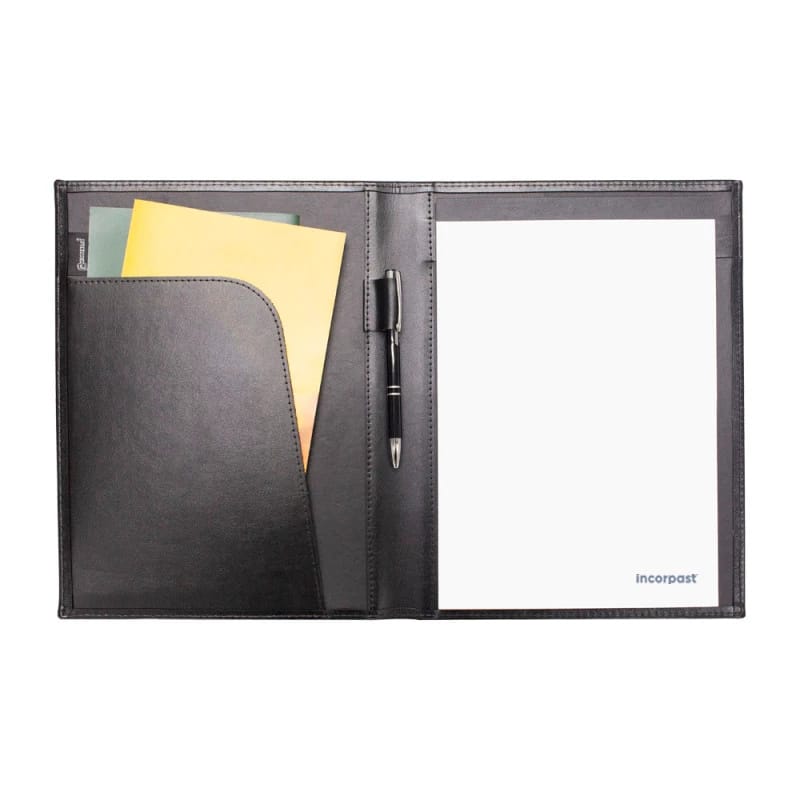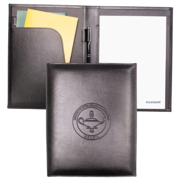 A Pasta Convenção Stander com Suporte para Bloco Incorpast foi pensada para você que frequenta eventos, feiras e palestras e tem a necessidade de levar o seu material. A Pasta Convenção Stander com Suporte para Bloco Incorpast possui suporte para bloco de anotações, 1 porta caneta e 1 bolsa interna. Assim você tem o que você precisa na hora! Fabricadas em couro sintético, é uma ótima opção para palestrantes, oradores ou participantes de eventos. Conte ainda com personalizações como o baixo relevo ou serigrafia para tornar seu evento inesquecível!
