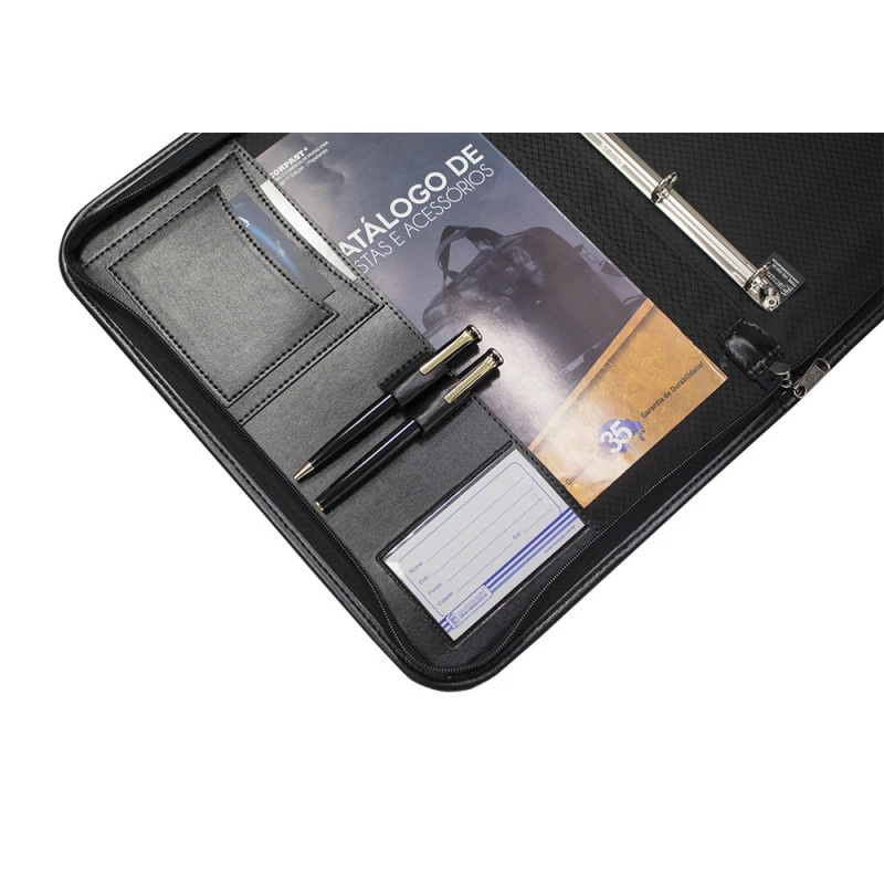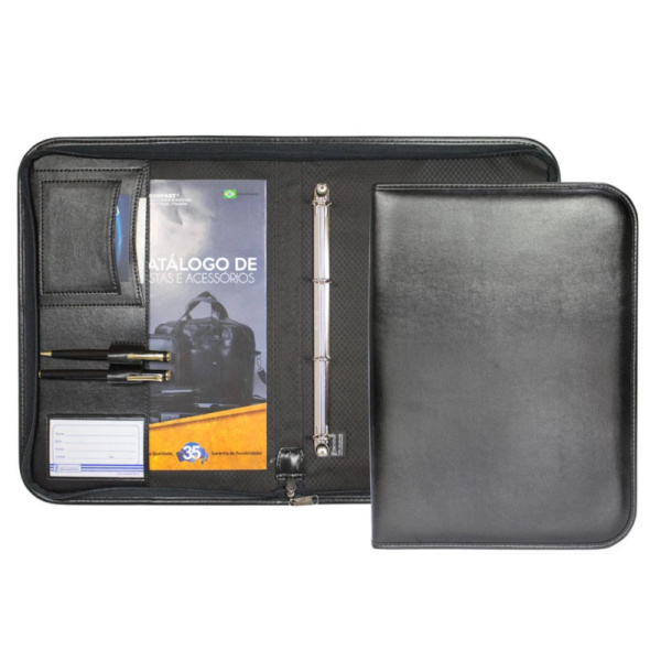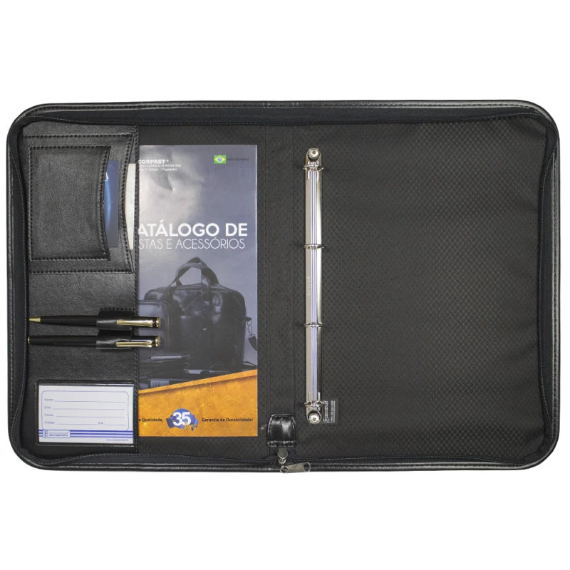 Pasta Executiva c/ Ferragem 4 Argolas e Zíper em Couro Sintético 38x27x3,5cm