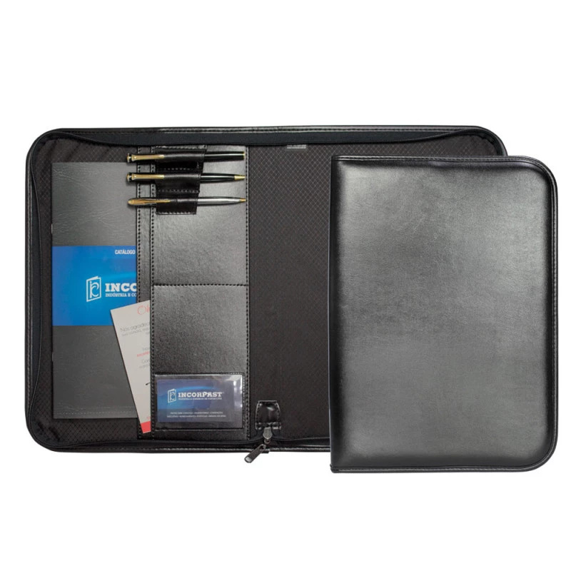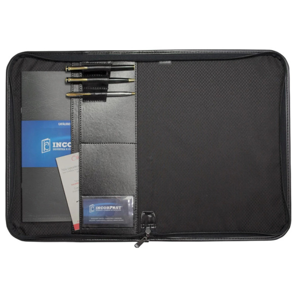 Leve seus documentos com mais organização com a Pasta Executiva Incorpast. A Pasta Executiva Incorpast possui 1 bolsa interna com divisórias, visor de identificação, 3 porta canetas e fechamento a zíper. Personalize sua Logo em baixo relevo ou serigrafia! Você ainda pode personalizar o produto de acordo com a sua necessidade incluindo abas internas, zíperes e alça. A Pasta Executiva Incorpast garante mais facilidade no seu dia a dia.