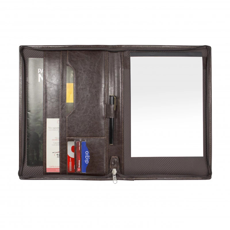 Leve seus documentos com mais organização com a Pasta Executiva Slim Incorpast. A Pasta Executiva Slim Incorpast possui 1 bolsa interna, 3 porta cartões, 1 porta caneta, 1 suporte para bloco de anotações e fechamento a zíper. Personalize sua Logo em baixo relevo ou serigrafia! Você ainda pode personalizar o produto de acordo com a sua necessidade incluindo abas internas, zíperes e alça. A Pasta Executiva Slim Incorpast garante mais facilidade no seu dia a dia.