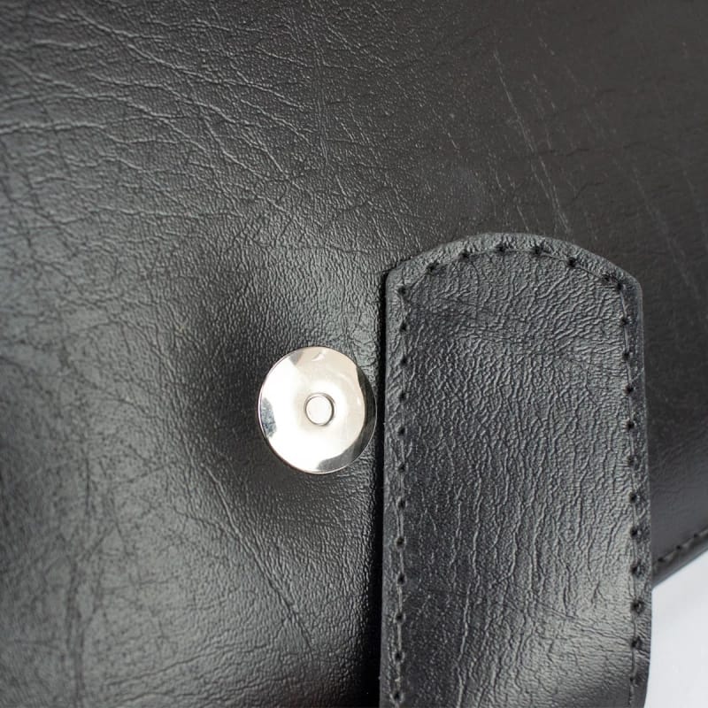 | Características | • Produto Artesanal Fabricado no Brasil • Revestimento em couro sintético • Costurado • Almofadado • Bolsa Interna • Fechamento em Botão Magnético |