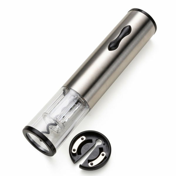 O Saca Rolhas Elétrico é confeccionado em alumínio e em sua parte inferior de acrílico transparente. Acompanha um corta lacre. Para utilizar você vai usar, primeiramente, o corta lacra ao redor da boca da garrafa. Assim que a rolha ficar evidente, você posiciona o saca rolhas sobre a garrafa e aperta o seu botão inferior. Pronto, a rolha será retirada de maneira rápida e simples, sem a necessidade de qualquer outro movimento.