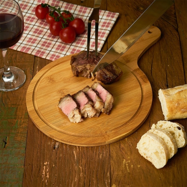 Com um design moderno e elegante, a Tábua Redonda Média é perfeita para o preparo de alimentos diversos, como frutas, legumes, queijos e frios. Além disso, a canaleta presente na borda da tábua ajuda a manter o líquido dos alimentos contido, evitando sujeira na hora de cortar e servir.